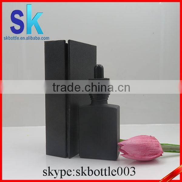 30ml Beauty Empty Matte Black Rectangle Glass Dropper Bottles for Beard Oil Packing With Box