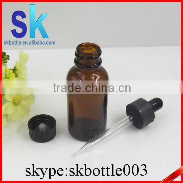 30ml Amber Round Boston Glass Bottle With Glass Pipette Bottle