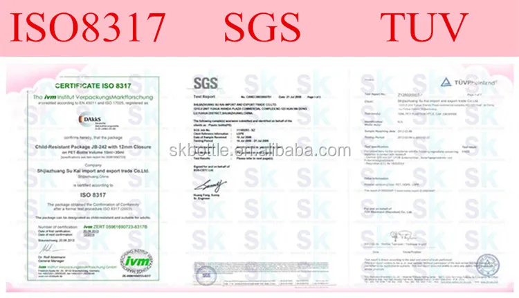 **SGS test and TUV certificate, ISO8317