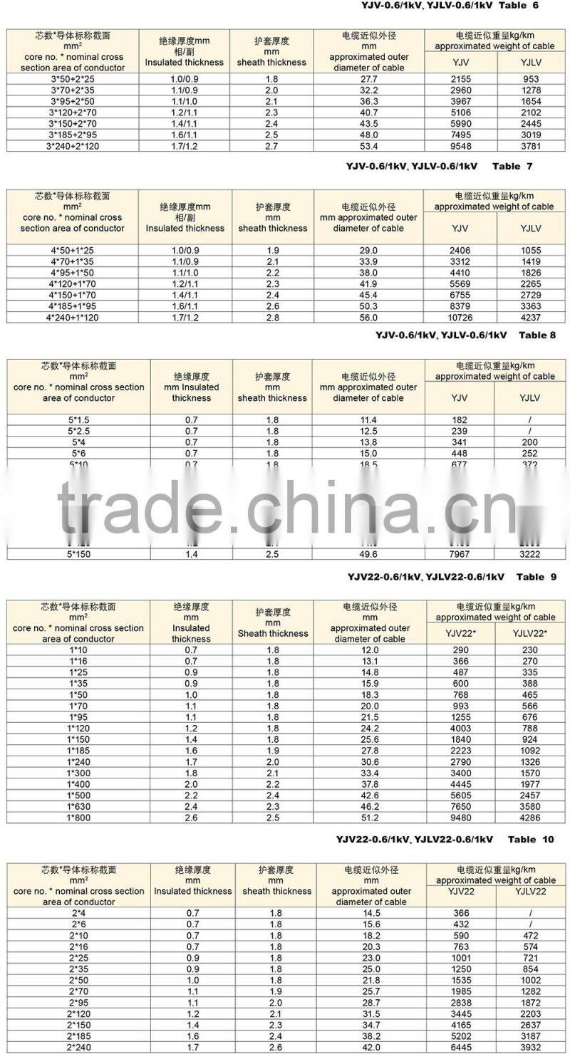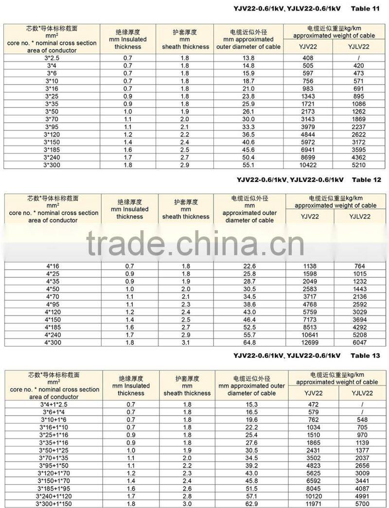YJV22 - XLPE insulated steel tape armored PVC sheathed power cable (XLPE/STA/PVC Cable)