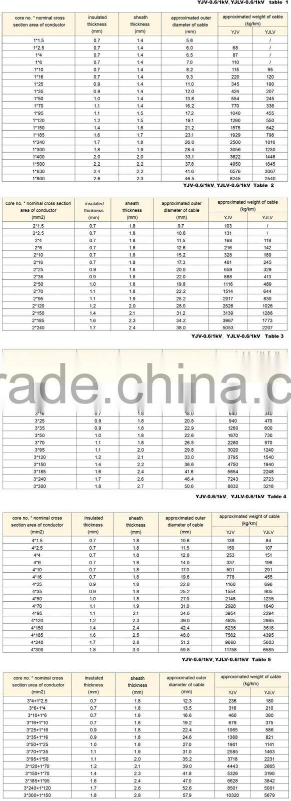 YJV - XLPE insulated PVC sheathed power cable (XLPE/PVC Cable)