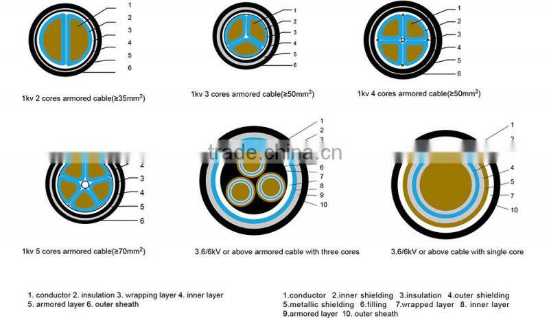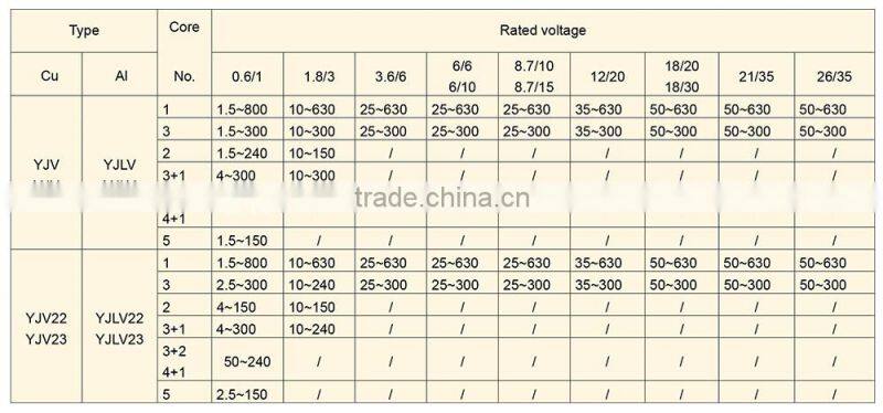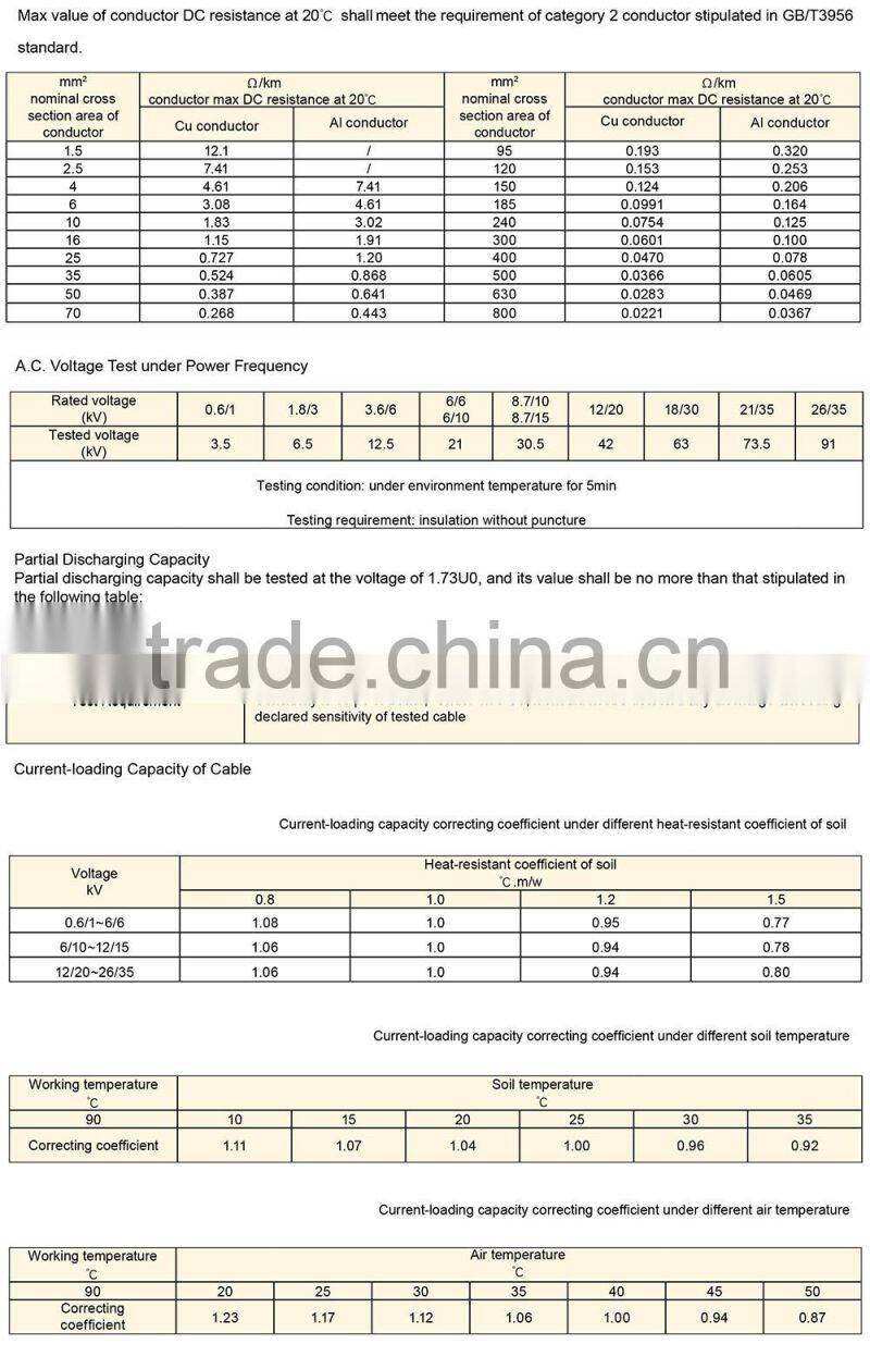 5,A.C. rated voltage U0/U of cable is 0.6/1kV~26/35kV.