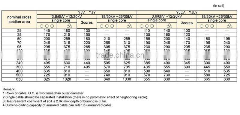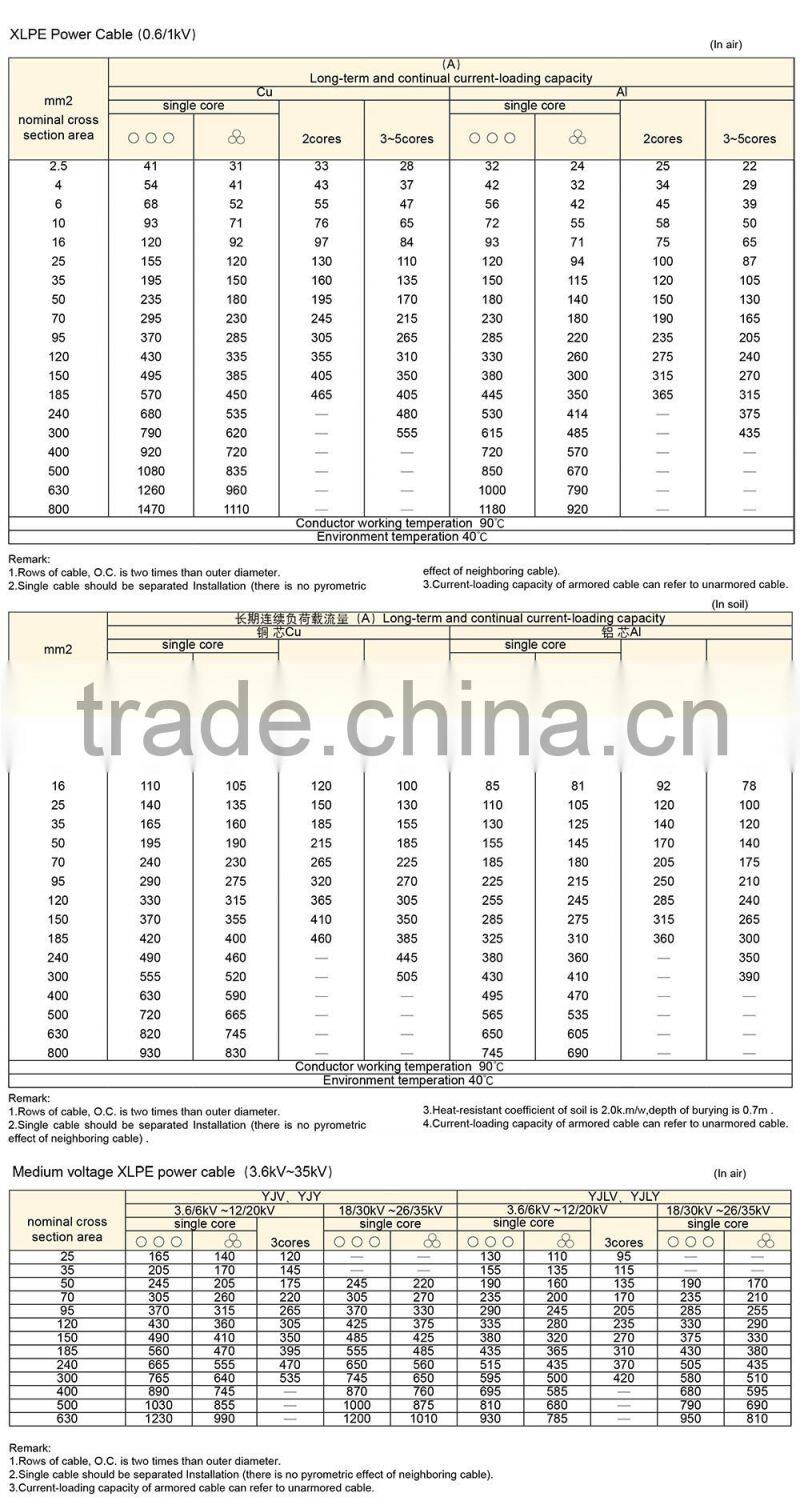 2, Max. temperature of cable conductor shall be no more than 250℃ during short circuit (the longest lasting time shall be no more than 5 seconds).