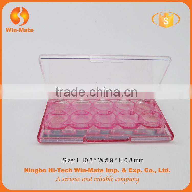 Factory price!glitter rectangle 10 cell pinlk empty WMC-MY2047 AS material eyeshadow packaging manufacturer