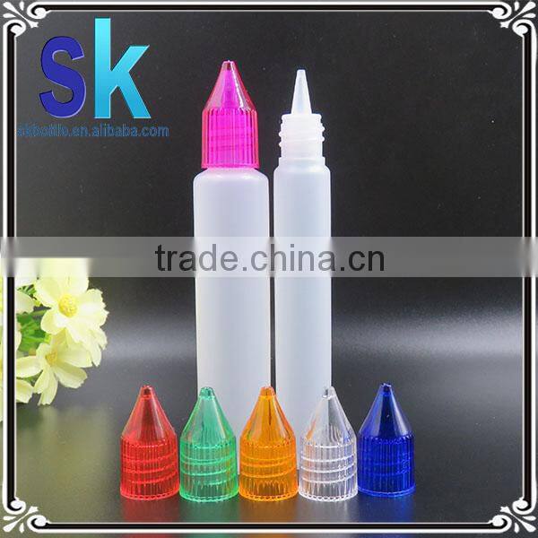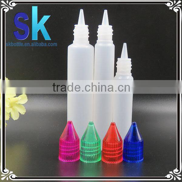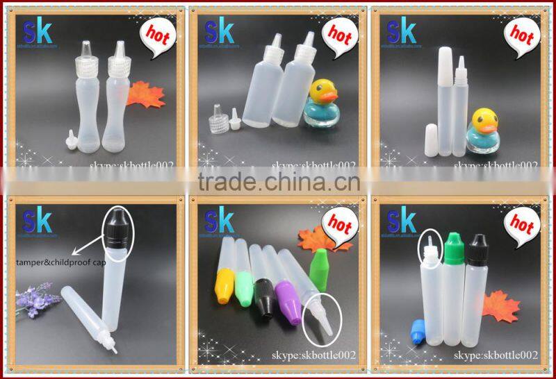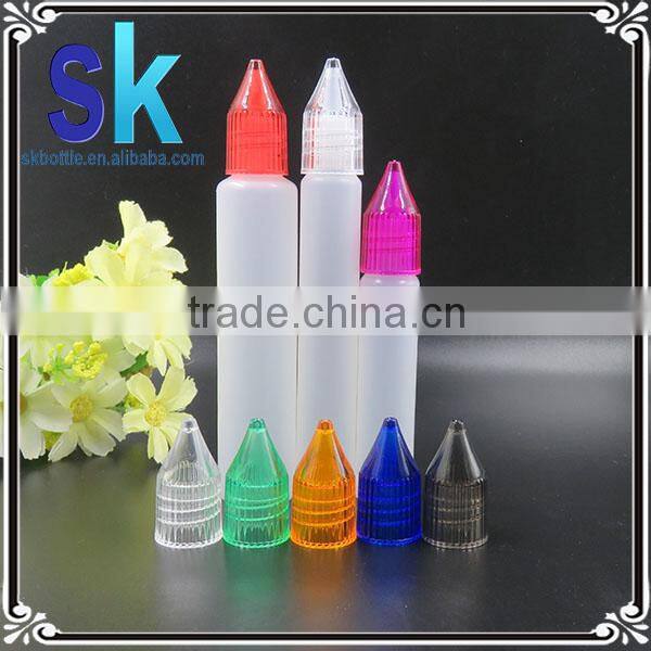 2015 wholesale Unicorn bottle 10ml 15ml 30ml , long thin tip plastic dropper bottle 10ml 15ml 30ml childproof cap,15ml pen bottl