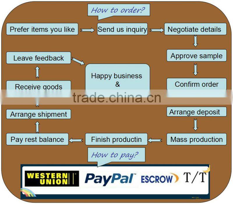 Price is quoted on EXW or FOB Guangzhou, other terms can be negotiated. In general, 30% deposit before production and full balance before delivery.