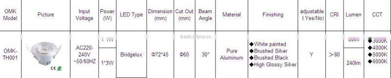 1w 3w High Glossy Silver Lamps of Ceiling Bridgelux Adjustable Fancy Ceiling Lights With Import Lamps From China