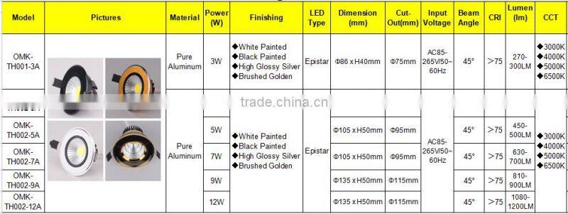 3W/5W/7W/9W/12W LED Ceiling light with CE driver