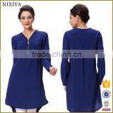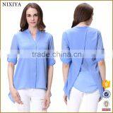 Long Sleeve Half Zipper Front Simple Chiffon Blouse Women for Spring and Autumn