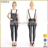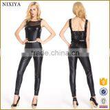 Sexy Women Leather Jumpsuits Long Skinny Black Jumpsuits Black Jumpsuits