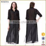 2015 Summer Fashion Women Black Long Chiffon Dress Shirt