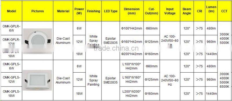 OEM 6W LED Glass Panel Light With Good Quality OMK-GPLS-6W