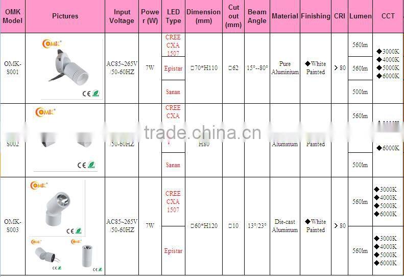 theatre lights Epistar 7w 15 degree beam angle led spotlight with 560lm lampa