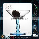 Sodalime Leadfree Ice Cream Glass Cup Blue Solid Color Stem Hand Blown Manufacturing Flower Shaped