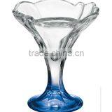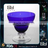 Sodalime Ice Cream Cup With Stem Lead Crystal Manufacture Blue Rim High Quality