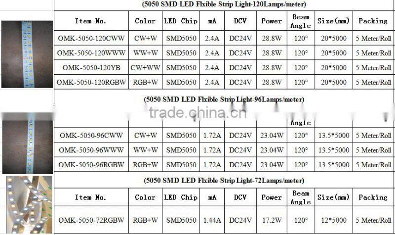 28.8W 5050 RGB+W Flexible Led Strip With CE ROHS Hot Sale