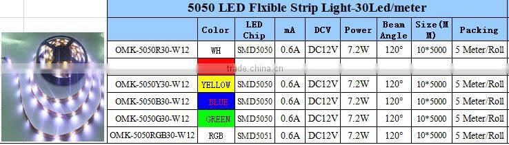 7.2W SMD 5050 rgb flexible led strip with CE ROHS