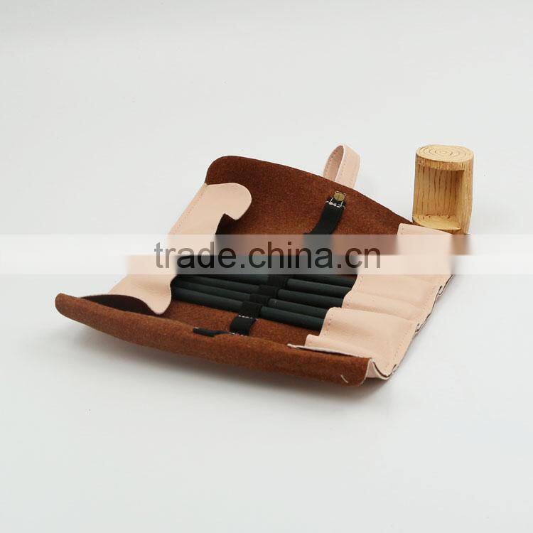PU Brown Pencil Case, Roll up Pencil Case
