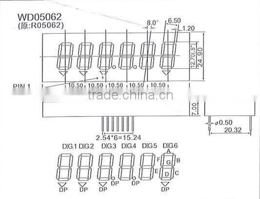 0.56 inch 7 segment 6 digits LED digital display