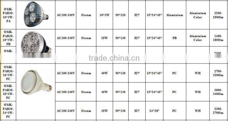 25W/35W/40W/45W Par30 LED Light Source OMK-PAR30-16*3W-PA