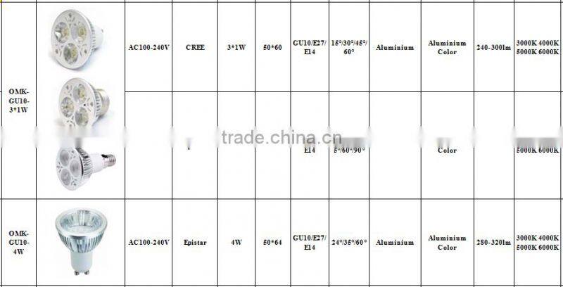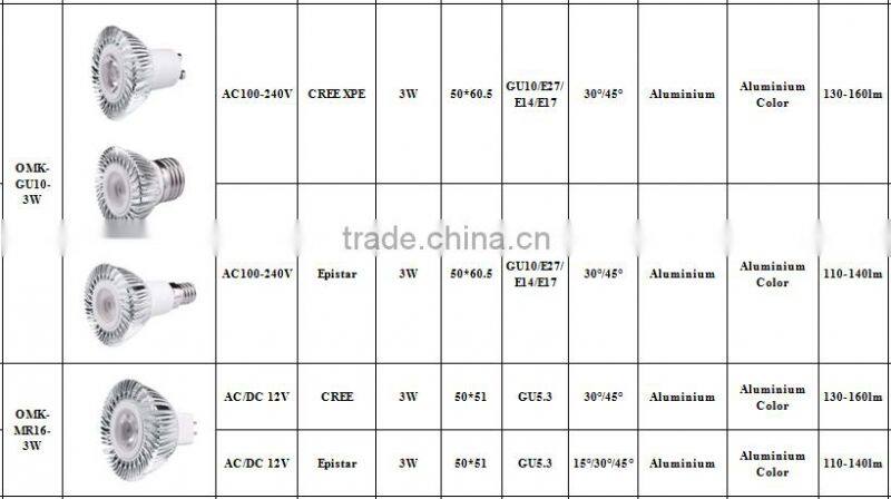 3W/4W/5W/6W/8W/9W Mr16/gu10 Led Spotlight OMK-GU10-3W