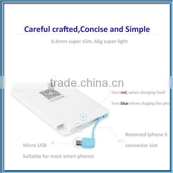 Hot Selling Credit Card Power Bank With Led Flashlight Custom Logo Factory Price for 2500mAh