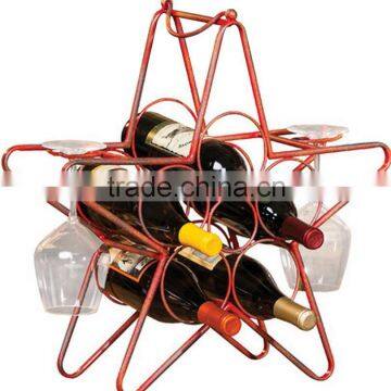 Rustic Star 5 Bottle Wine Rack with Glass Holders Table Top