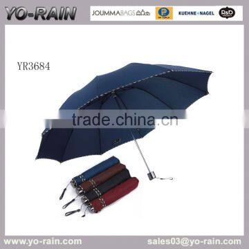 1. Description: 22"X8ribs, 3 fold city design printed umbrella,steel/fiber foldable umbrella frame, rubber finishing handle, photo print pongee fabric