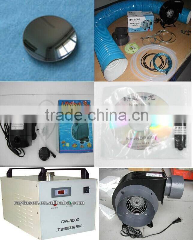 Air blower and exhausting pipes, water chiller, air pump, dual red dot pointer, DSP offline control, knife board, software etc |