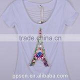 Women Fashion Tops Summer The Eiffel Tower Beading T-shirt