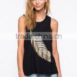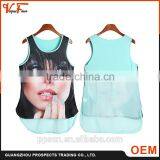 2016 Fashion Design Knit+chiffon Printed Plus Size Wholesale Women Tank Tops