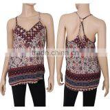 Hot Sale OEM Fashion Design Print Rayon Spaghetti Strap Normal Women Tank Top