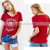 2016 Fashion Design Cotton V-neck Red Color Short Sleeve t Shirt for Woman Quality Choice