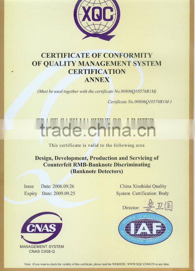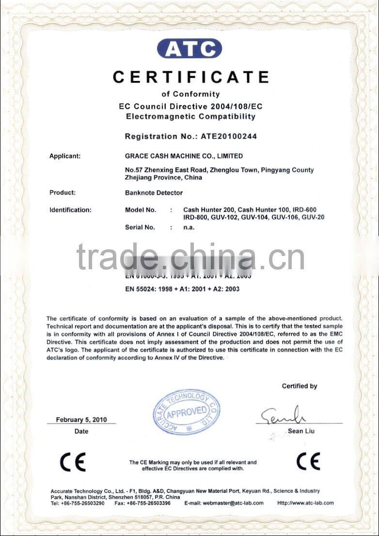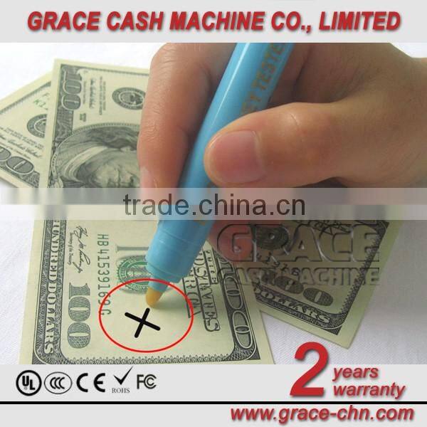 Grace Cash Machine Co., Limited claim that the pens will detect a great majority of counterfeit notes in circulation, and it can be very effective and offer a great visible deterrent against those attempting to pass fake notes. Banknote detector pens are also inexpensive, and many can be distributed to cashier personnel in numbers for little outlay.
