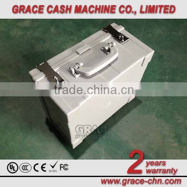 Different with cloth or metal cash box in the market, the new cash box is made of special material, Polycarbonate.