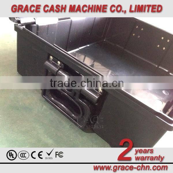 Different with cloth or metal cash box in the market, the new cash box is made of special material, Polycarbonate.