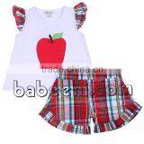 Apple Appliqued Short Set for Litte Girl on Back to School