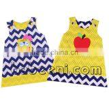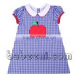 Navy Large Gingham Appliqued A-line Dress for Little Girl With Apple Appliqued Pattern