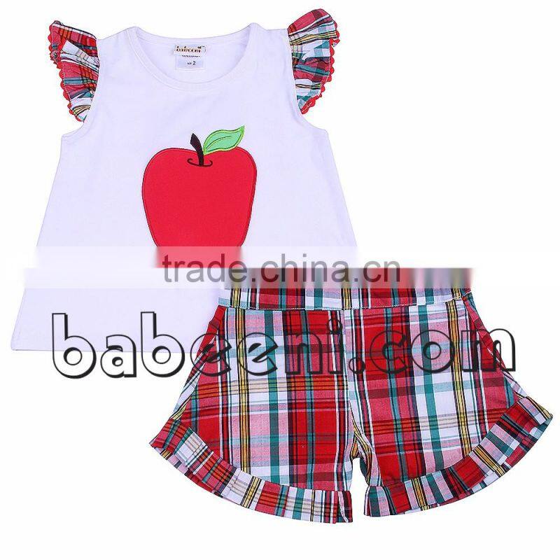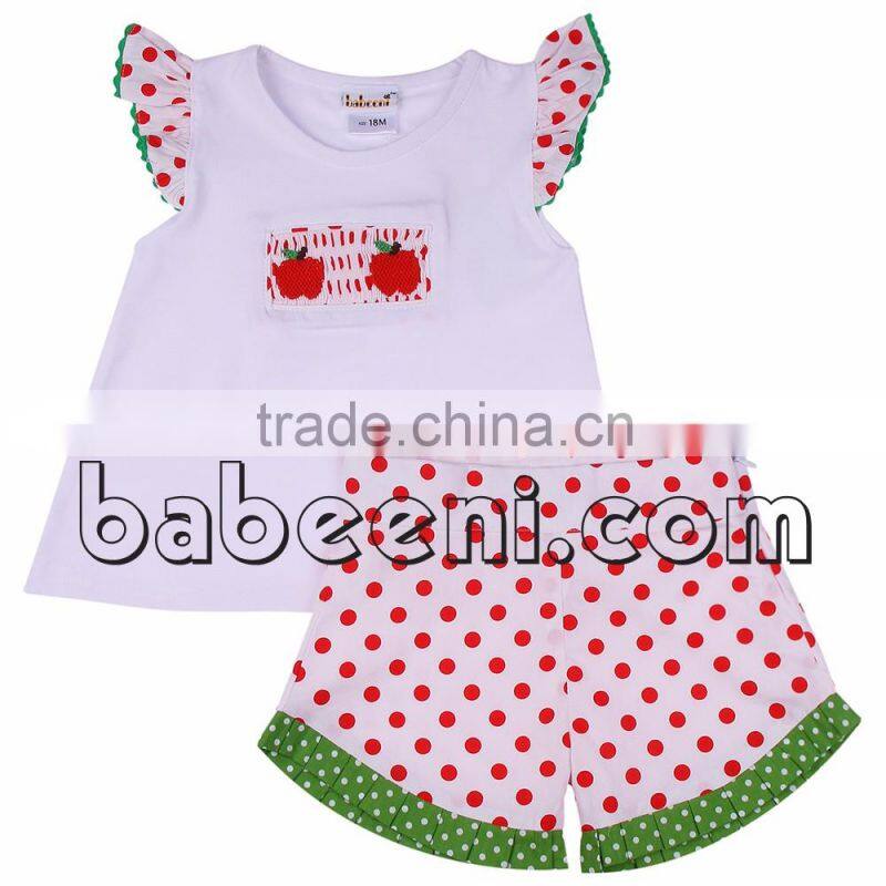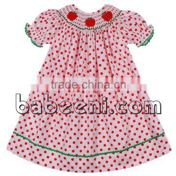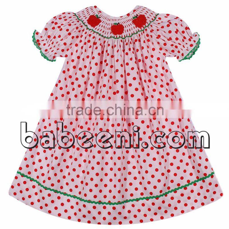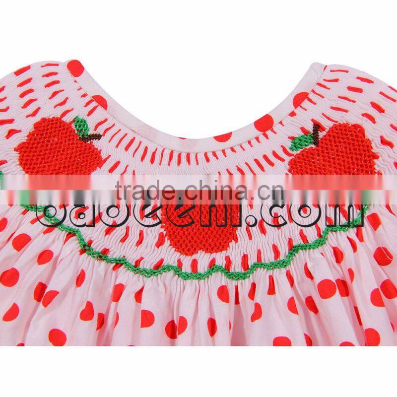 Beautiful smocked dresses for little girl with apple hand smocked patterns around the neck, short sleeves. The product is suitable for Back to school