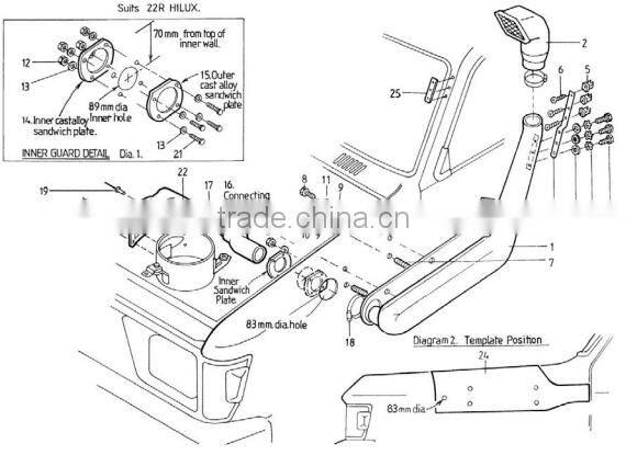 4x4 Car Snorkel Kit for Toyota Hilux 106 Series 22R ENGINE 2.4L PETROL