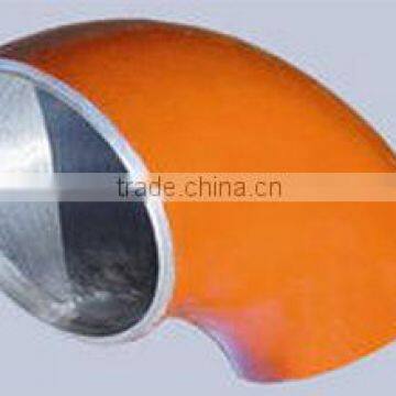 PP-lined elbow has good rigidity & wear resistance, higher hardness and can be applied to chemical industry.Polypropylene (PP) is a nontoxic, tasteless, odourless, high crystallinity thermoplastic polymer with regular configuration. With good rigidity and wear resistance, higher hardness, the high temperature impact is better (sudden drop if below -5°C) and the repeating fold resistance is strong. The heat resistance is better but anti-freezing property is worse. With good chemical stability, it doesn’t react with most chemicals except for the strong oxidizing medium and can be applied to the anticorrosive pipes for chemical industry and so on.