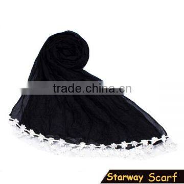 New Model Elegant Plain Lace Trim Scarf/