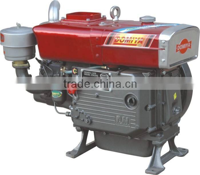 DOMIYA brand water-cooled diesel engine is the product of our company supplied for wide use. It is single-cylinder, horizontal, four-stroke and water-vaporization type, which are ideal power units for small generating sets, walking tractor, three-wheeled vehicle, farm boat, pump set and so on.