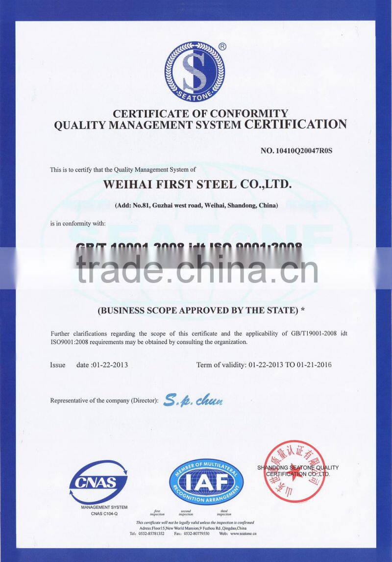 Weihai First Steel Co., Ltd is located in Weihai city, which is the world health city and the most suitable place to live in. We have superior environment and convenient traffic. It’s about 200 kilometers to Qingdao port.