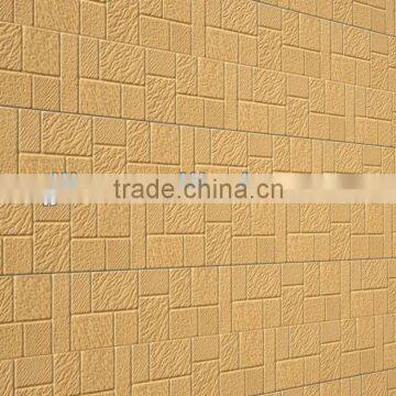 1.material: the panel compose of three parts, the most outside part is finish coat with metallic emboss.,the thick is 0.3mm, the middle part is high quality insulation material (pu,eps,xps and so on), the underside is moisture proof and heat-insulated aluminum-plated foil.