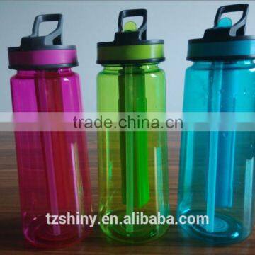 Taizhou Factory BPA Free TRITAN Bottle With Straw and Ice Stick Plastic Water Bottle With Printing Design
