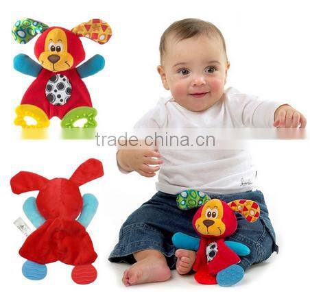 Baby Infant Cute Plush Toy Dog Comfort Towel With Sound Paper And Teether