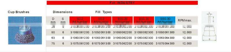 The crimped wire cup brush has different specifications: