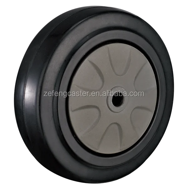 Description: The Rubber wheels are available for light, medium, and heavy duty applications, the Conventional-style rubber wheels can provide good floor protection and quiet operation under temperature range: -20°F to +160°F.. Soft Tread 70(±) Durometer Shore A scale, and Hard Tread 75(±) Durometer Shore A scale.