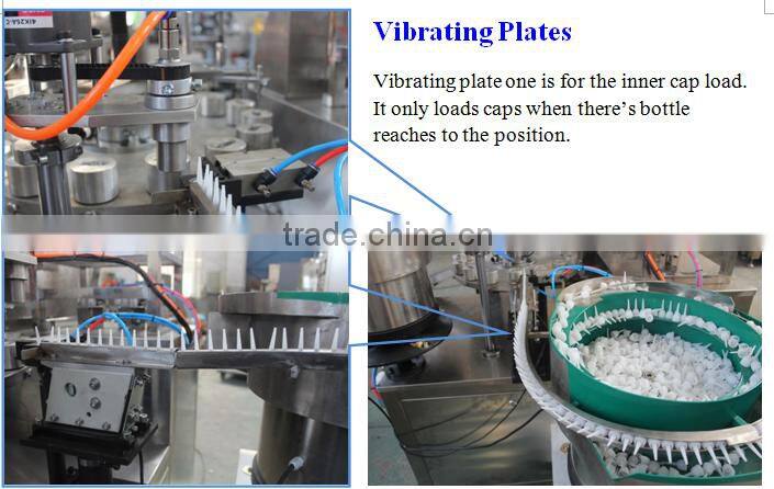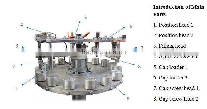 This machineis mainly used for plastic glue tube filling and capping.It contains a working disk and two vibrating plates. It has 2 filling heads and 16 positions.